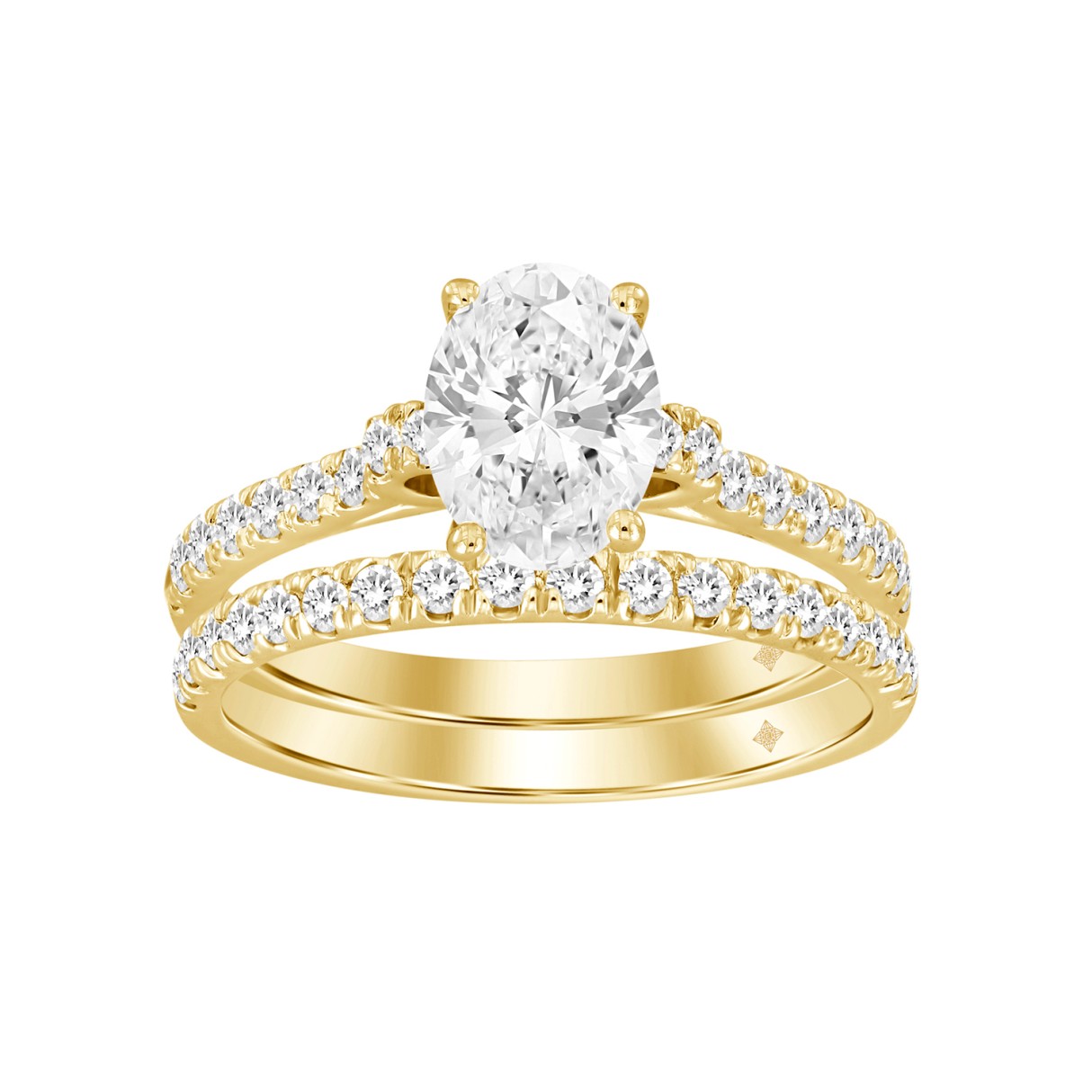 LADIES BRIDAL SET 1 1/2CT ROUND/OVAL DIAMOND 18K YELLOW GOLD (CENTER STONE OVAL DIAMOND 1.00CT)