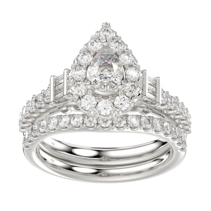 LADIES BRIDAL SET 1.50CT ROUND/BAGUETTE DIAMOND 14K WHITE GOLD (SI QUALITY) (CENTER STONE 0.50CT PEAR DIAMOND)