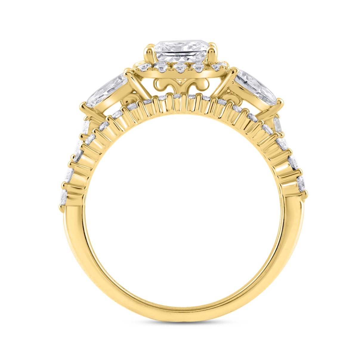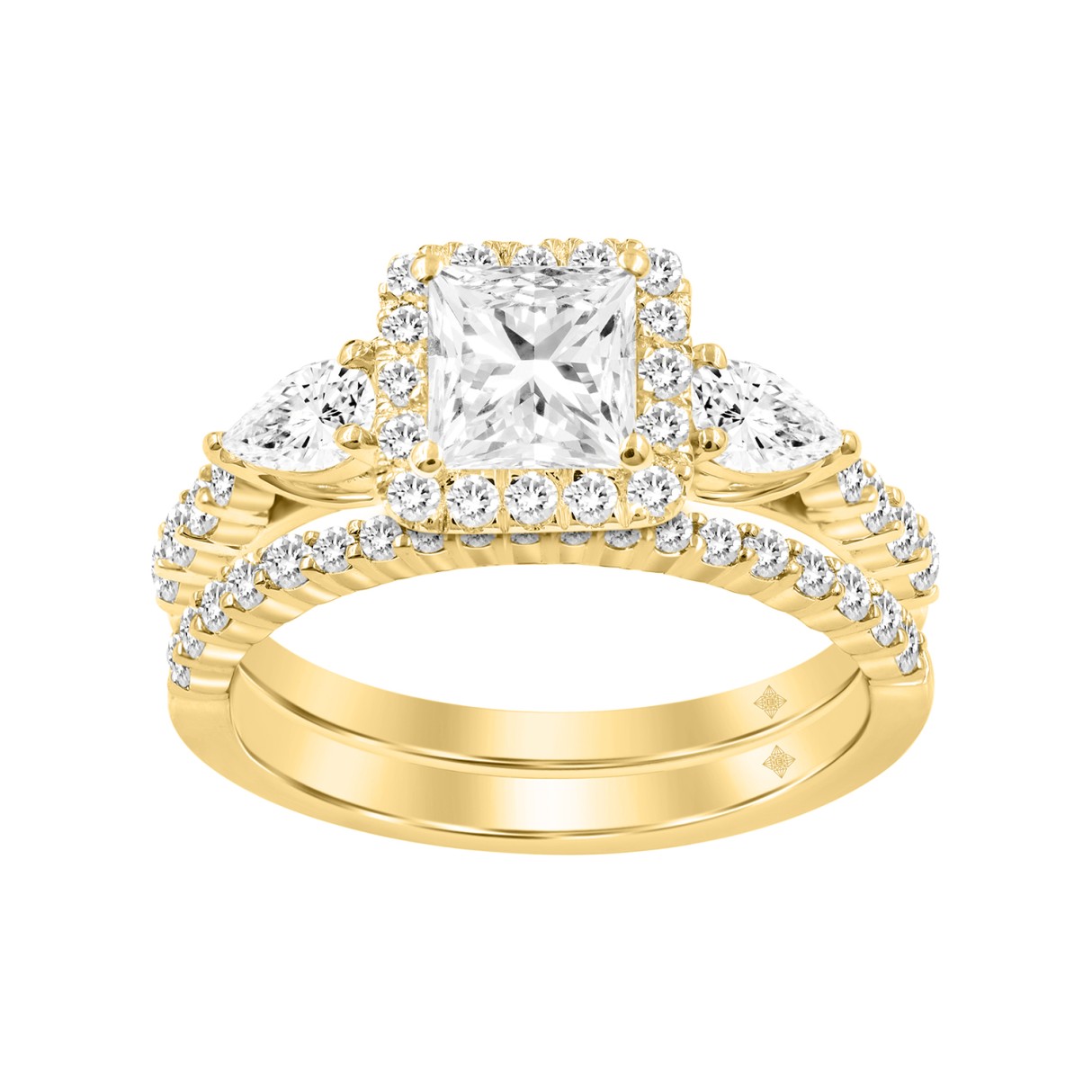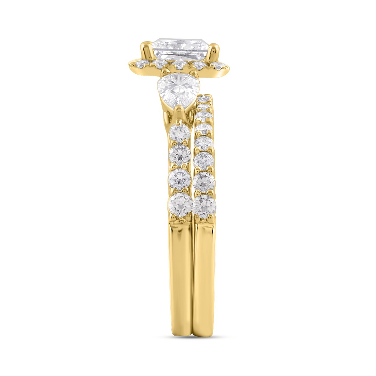 LADIES BRIDAL SET 2CT ROUND/PRINCESS/PEAR DIAMOND 14K YELLOW GOLD (CENTER STONE PRINCESS DIAMOND 1CT )