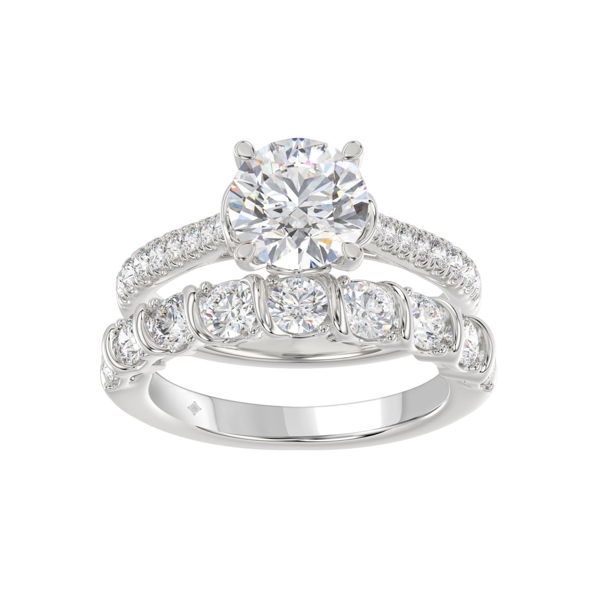 LADIES BRIDAL SET 3 1/2CT ROUND DIAMOND 14K WHITE GOLD (CENTER STONE ROUND DIAMOND 2.00CT)