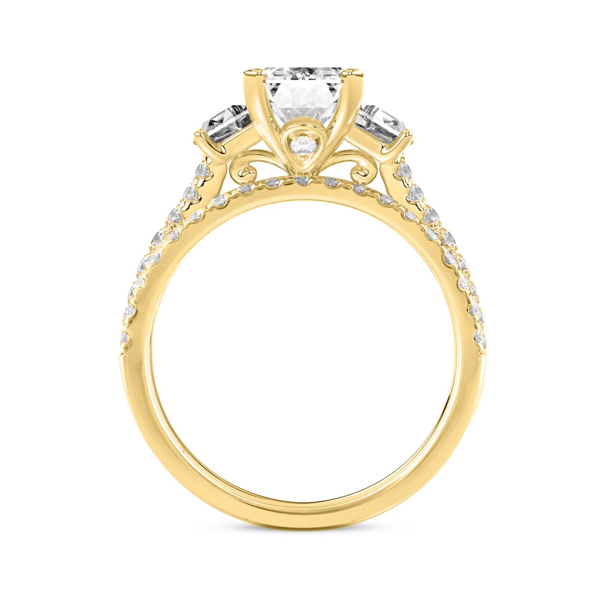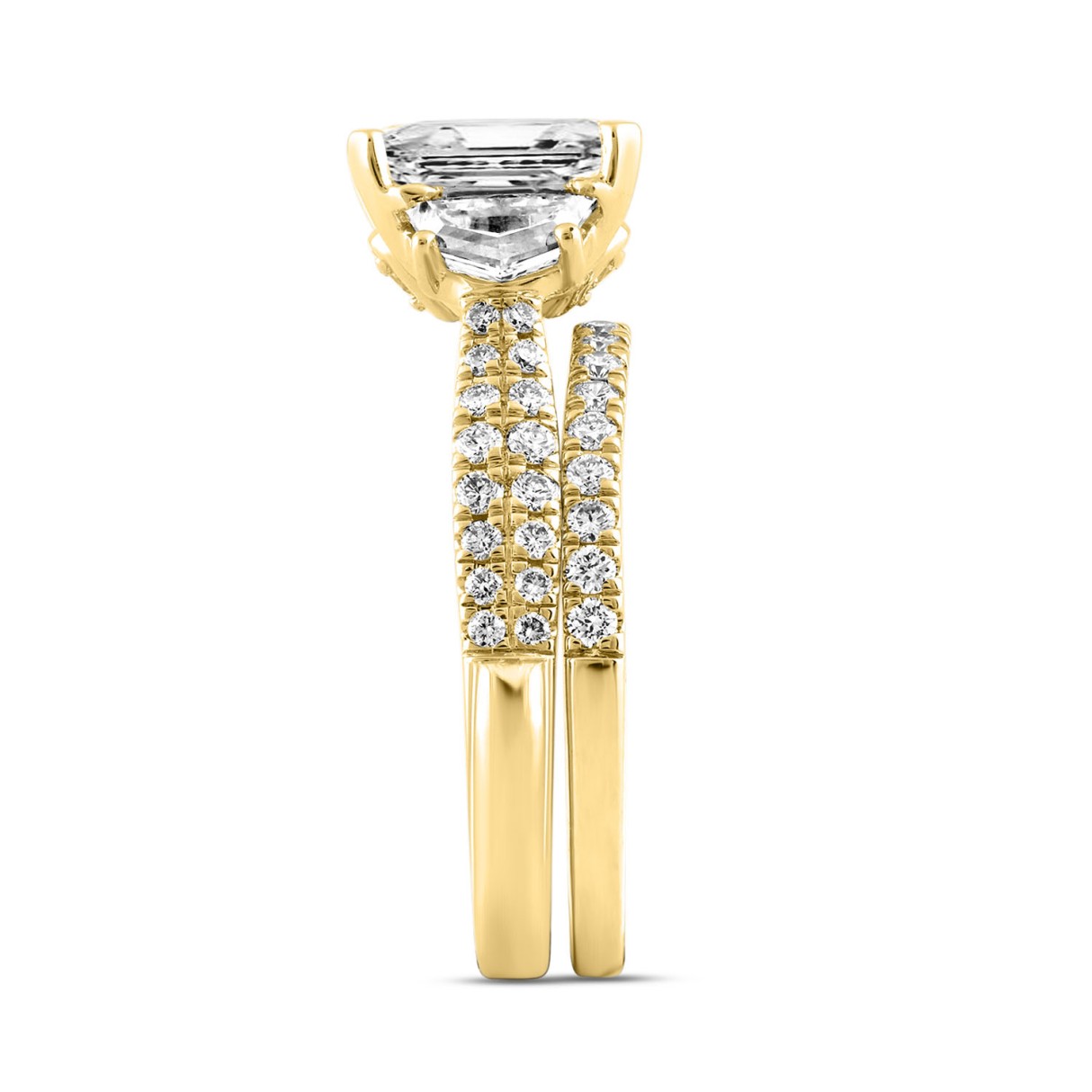 LADIES BRIDAL SET 3 1/4CT ROUND/EMERALD/CADLILAC DIAMOND 14K YELLOW GOLD (CENTER STONE EMERALD DIAMOND 2CT )