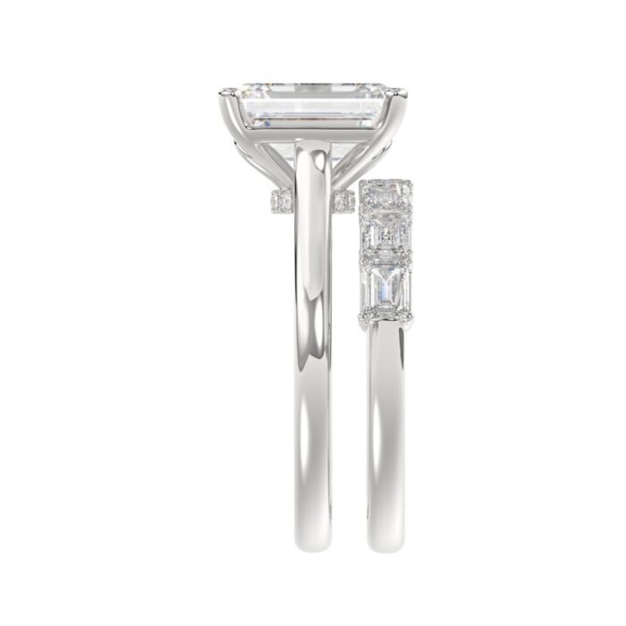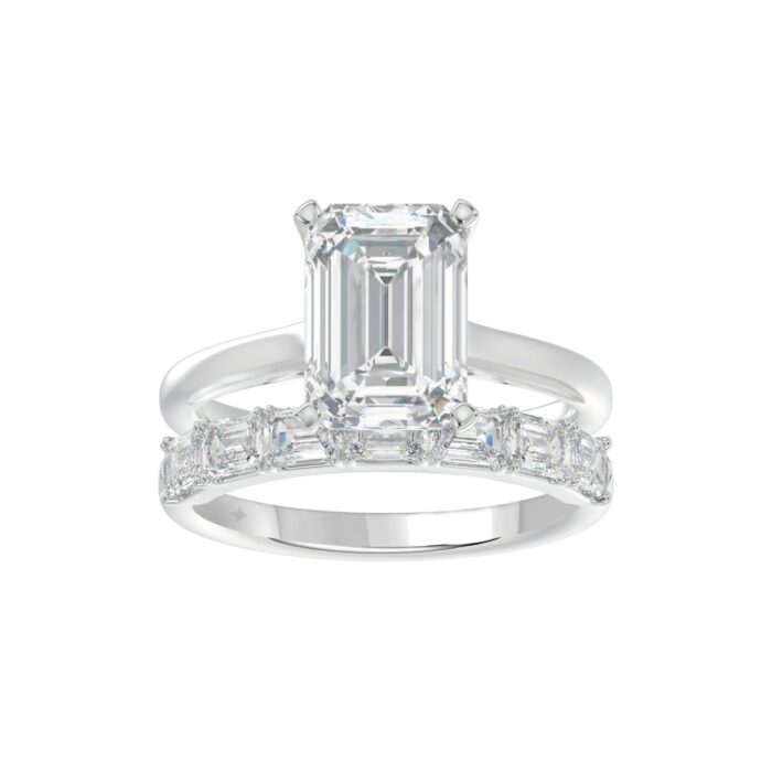 LADIES BRIDAL SET 3 7/8CT ROUND/EMERALD DIAMOND 14K WHITE GOLD (CENTER STONE EMERALD DIAMOND (2 1/2CT)