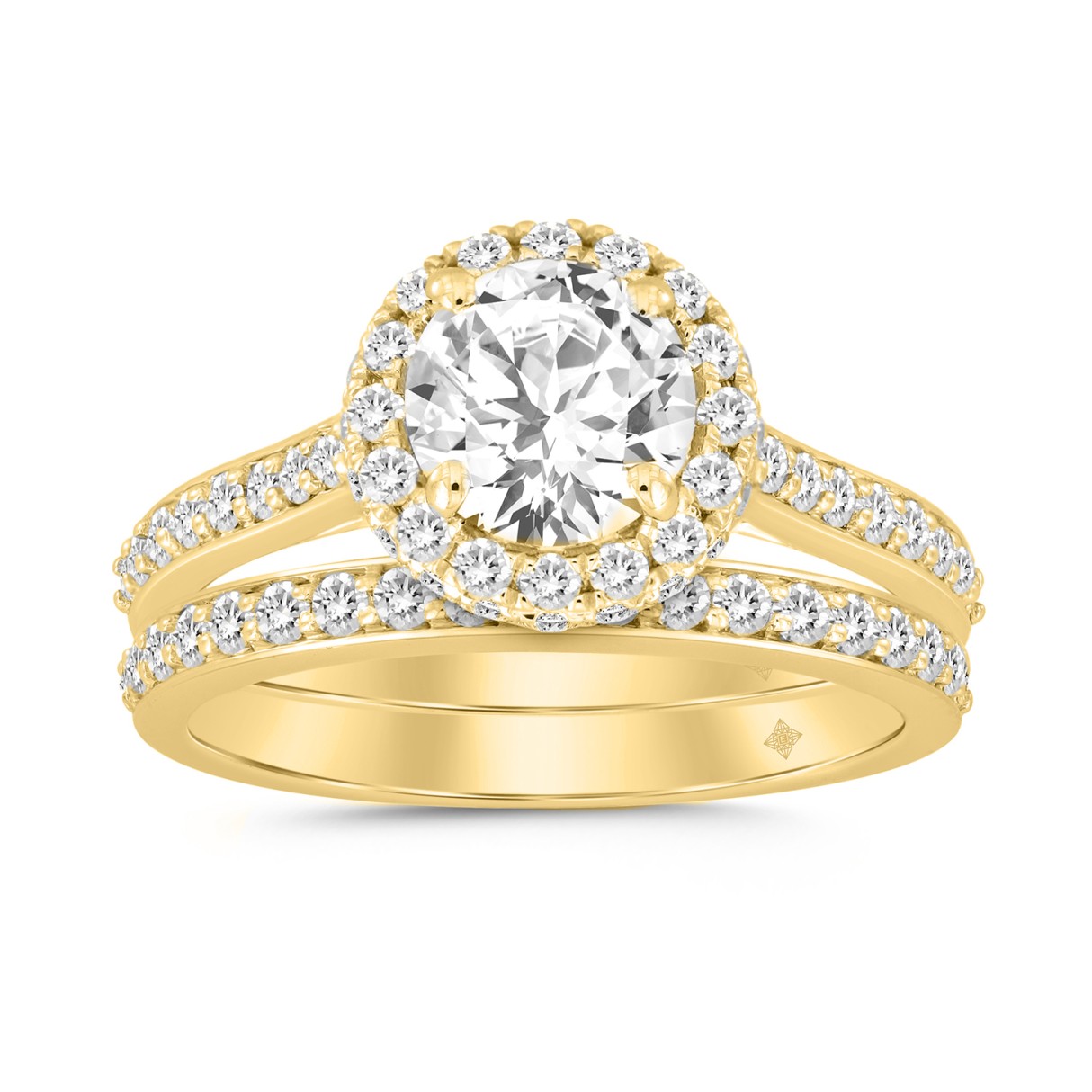 LADIES BRIDAL SET 3CT ROUND DIAMOND 14K YELLOW GOLD (CENTER STONE ROUND DIAMOND 2CT)