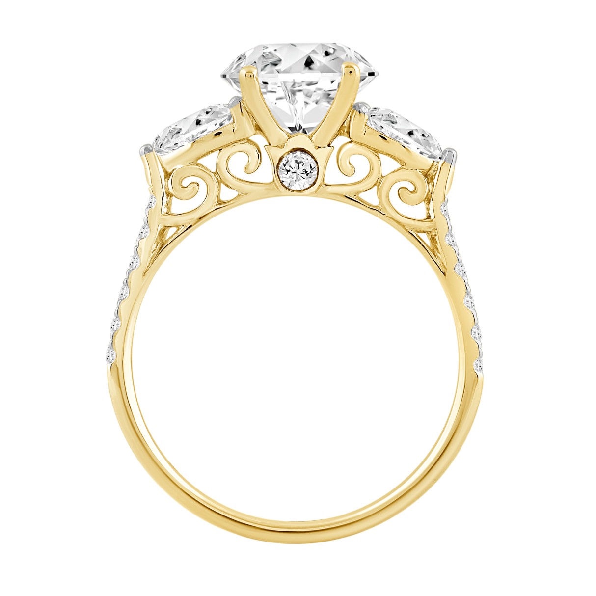 LADIES BRIDAL SET 3CT ROUND/PEAR DIAMOND 14K YELLOW GOLD (CENTER STONE ROUND DIAMOND 2CT )
