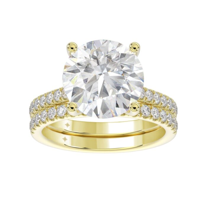 LADIES BRIDAL SET 5 1/2CT ROUND DIAMOND 14K YELLOW GOLD (CENTER STONE ROUND DIAMOND 5CT )