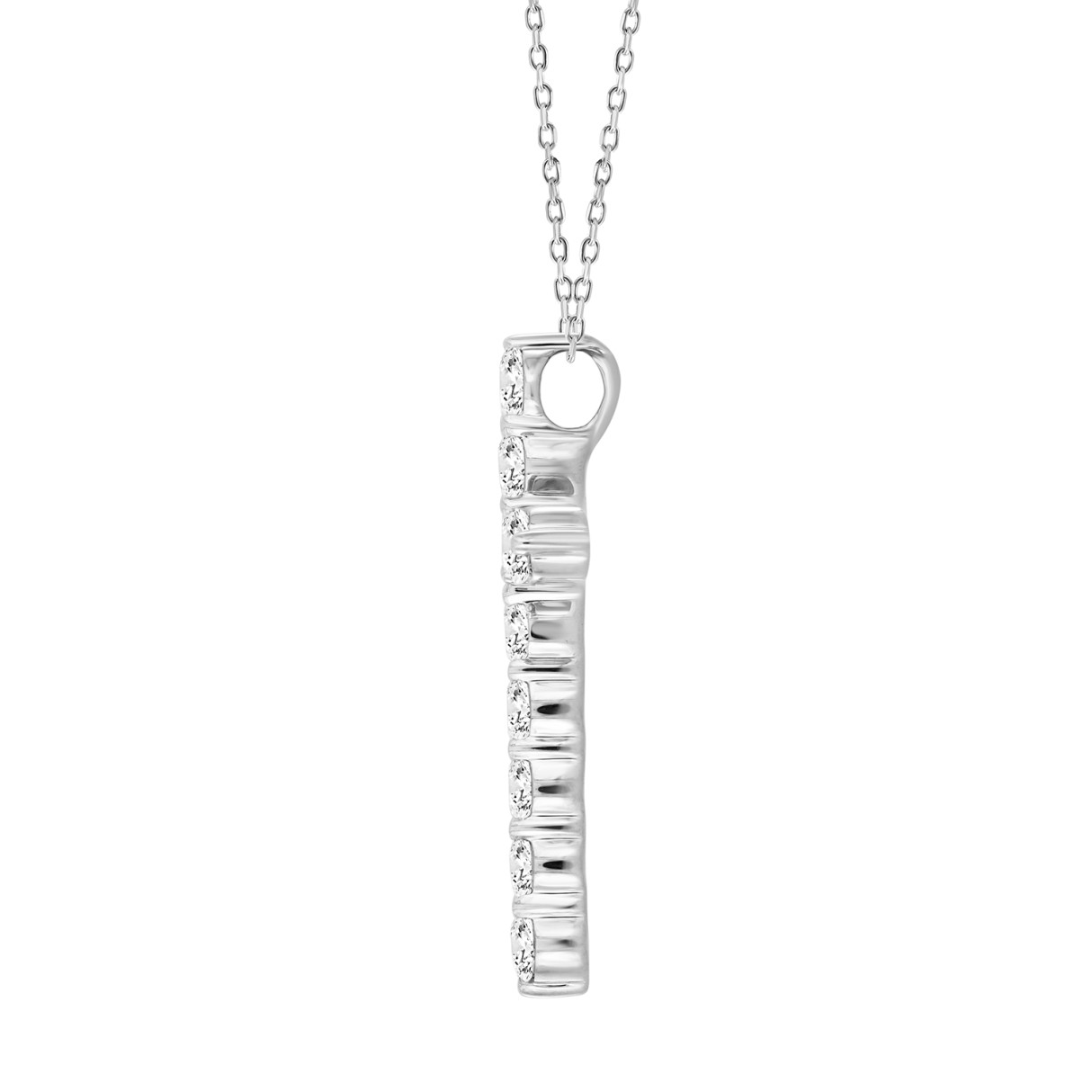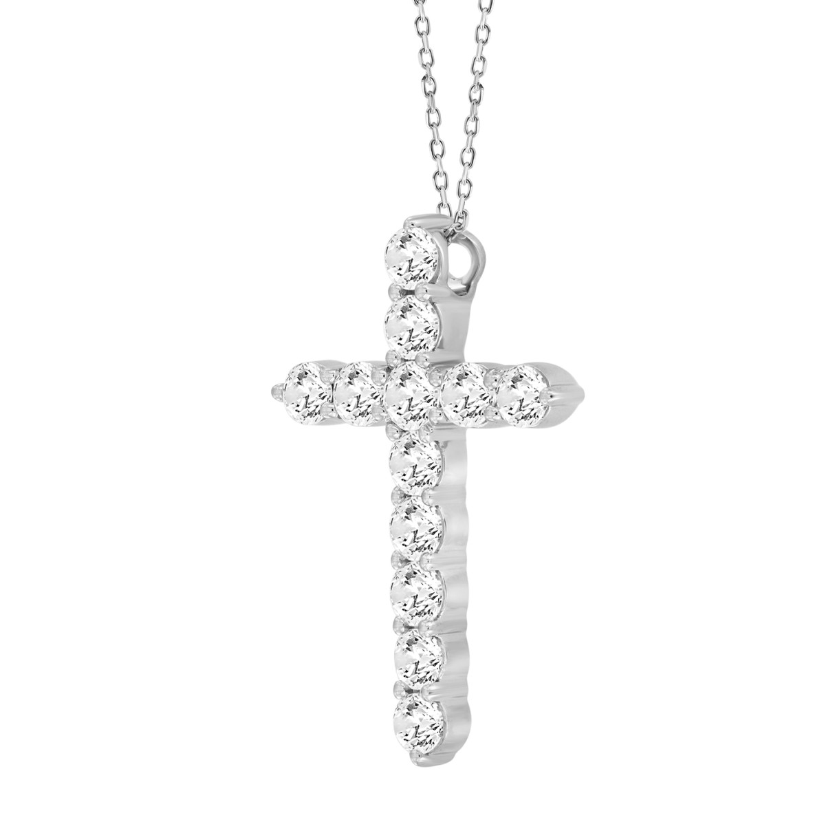 LADIES CROSS PENDANT WITH CHAIN 2CT ROUND DIAMOND 14K WHITE GOLD