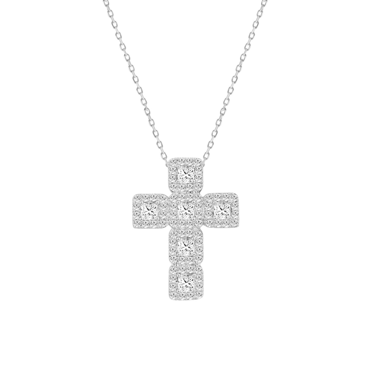 LADIES CROSS PENDANT WITH CHAIN 3CT ROUND/PRINCESS DIAMOND 14K WHITE GOLD