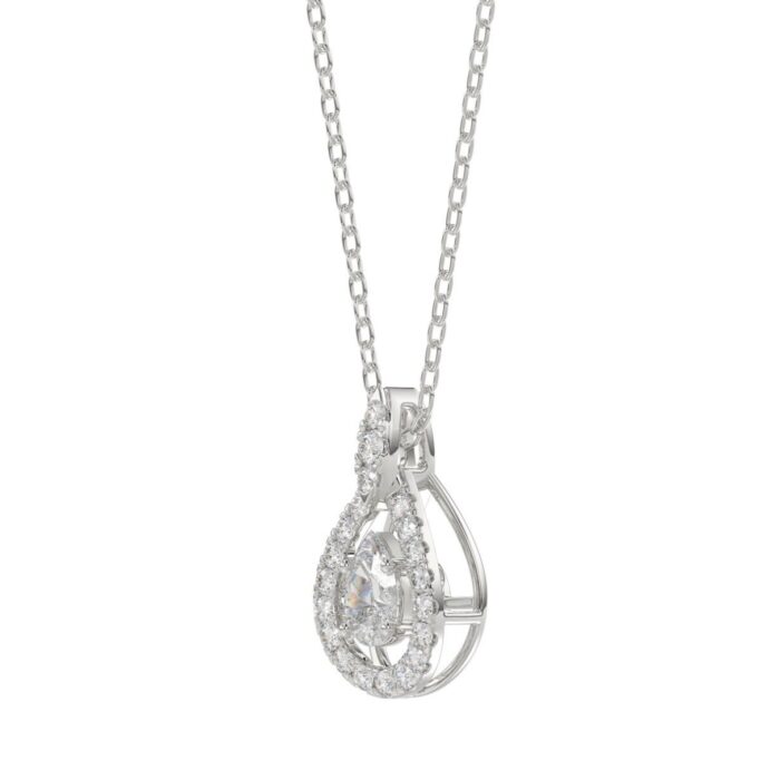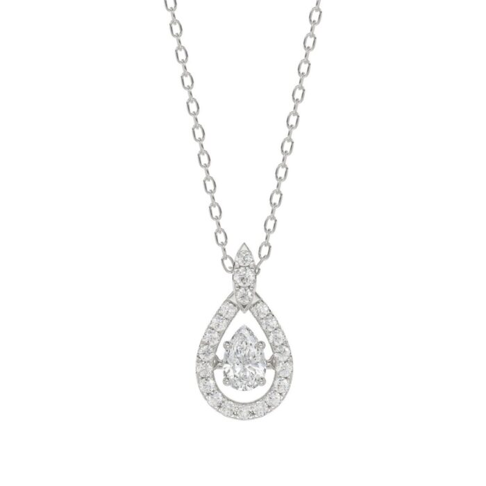 LADIES DANCING DIAMOND PENDANT WITH CHAIN 3/4CT ROUND DIAMOND 14K WHITE GOLD (CENTER STONE PEAR DIAMOND 1/2CT)