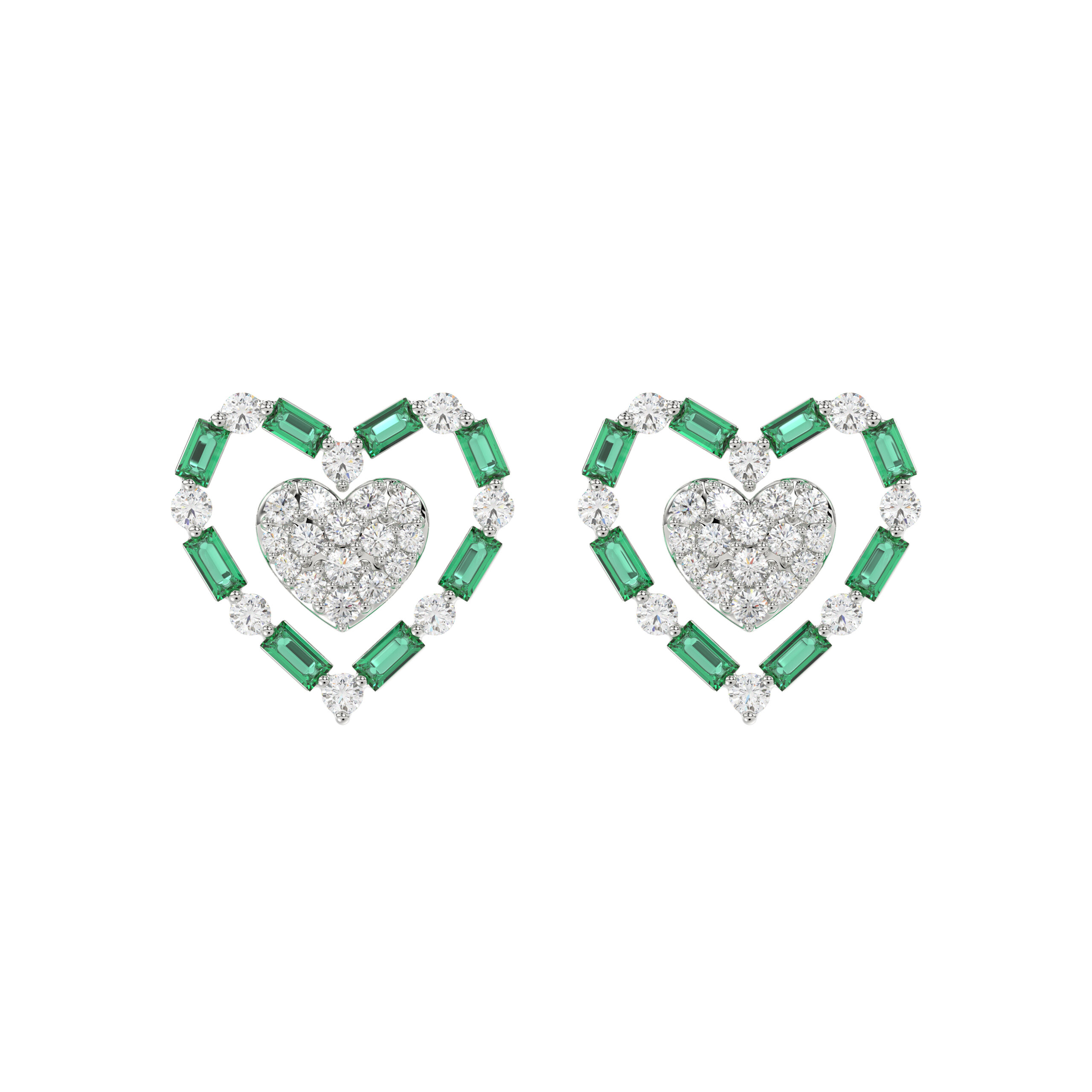 LADIES EARRING 0.50CT ROUND/GREEN EMERALD BAGUETTE DIAMOND 14K YELLOW GOLD (GREEN EMERALD BAGUETTE 0.32CT)