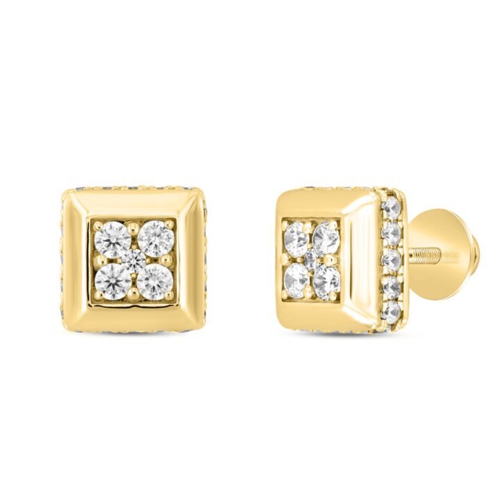 LADIES EARRINGS 1 1/2CT ROUND DIAMOND 14K YELLOW GOLD