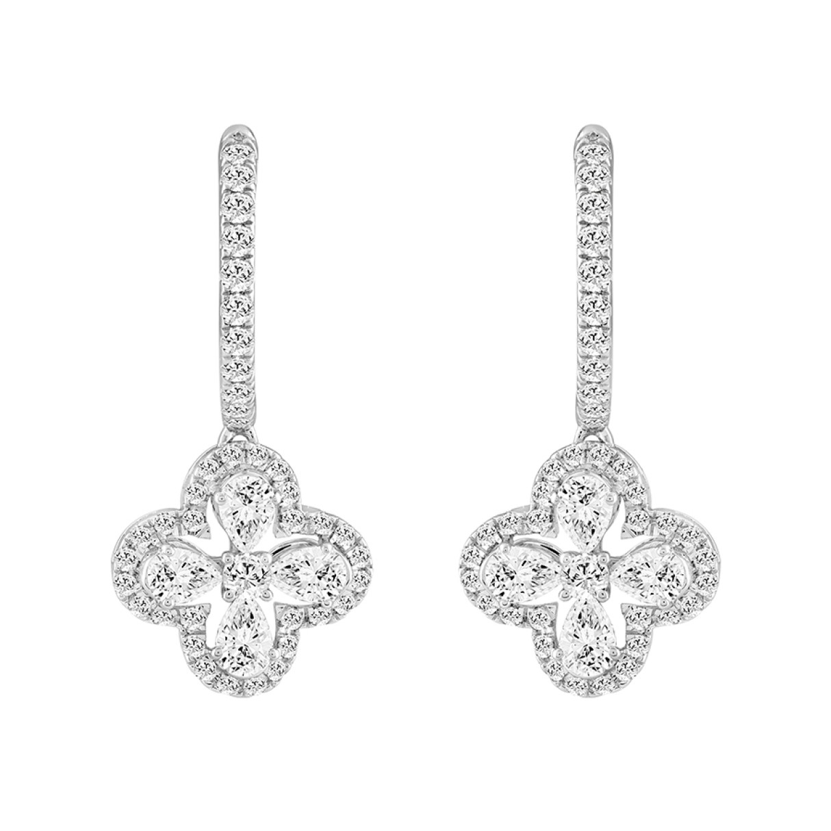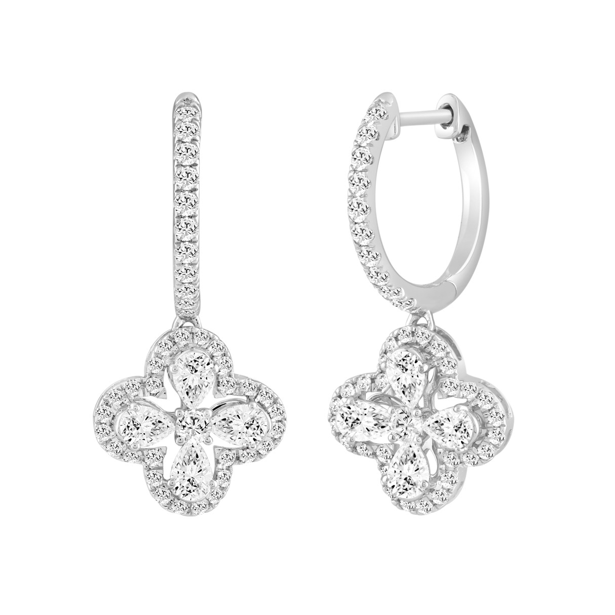 LADIES EARRINGS 1 1/2CT ROUND/PEAR DIAMOND 14K WHITE GOLD