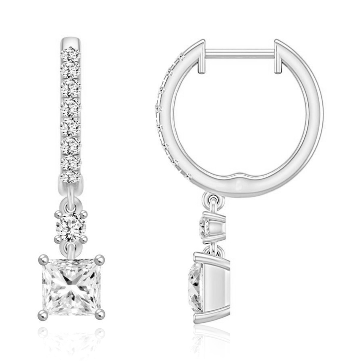 LADIES EARRINGS 1 1/4CT PRINCESS/ROUND DIAMOND 14K WHITE GOLD (CENTER STONE PRINCESS DIAMOND 1CT)