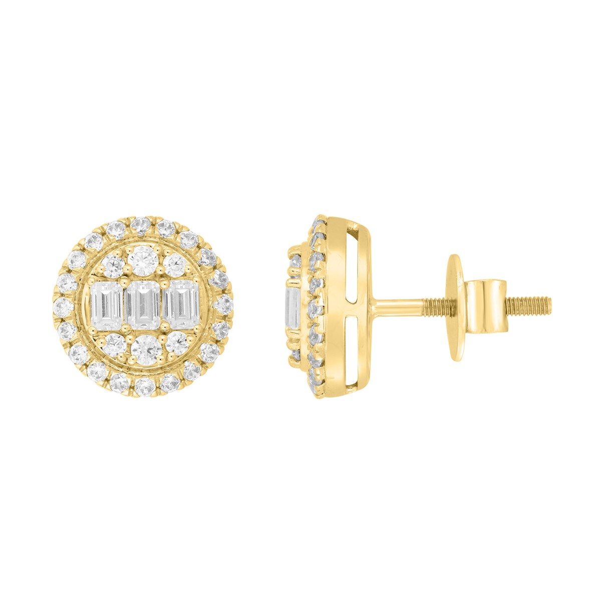 LADIES EARRINGS 1 1/4CT ROUND/EMERALD DIAMOND 14K YELLOW GOLD