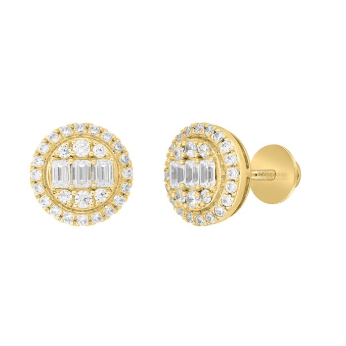 LADIES EARRINGS 1 1/4CT ROUND/EMERALD DIAMOND 14K YELLOW GOLD