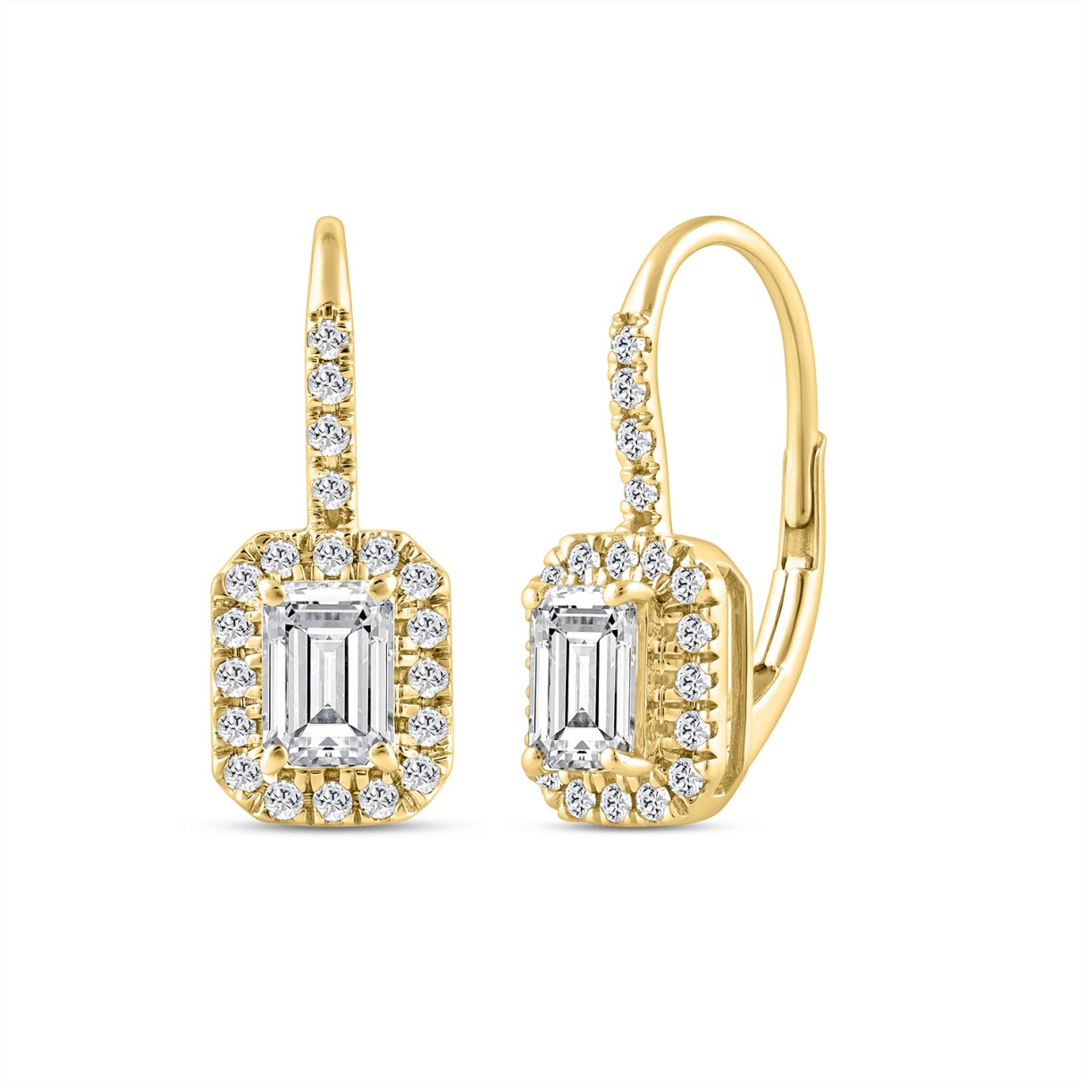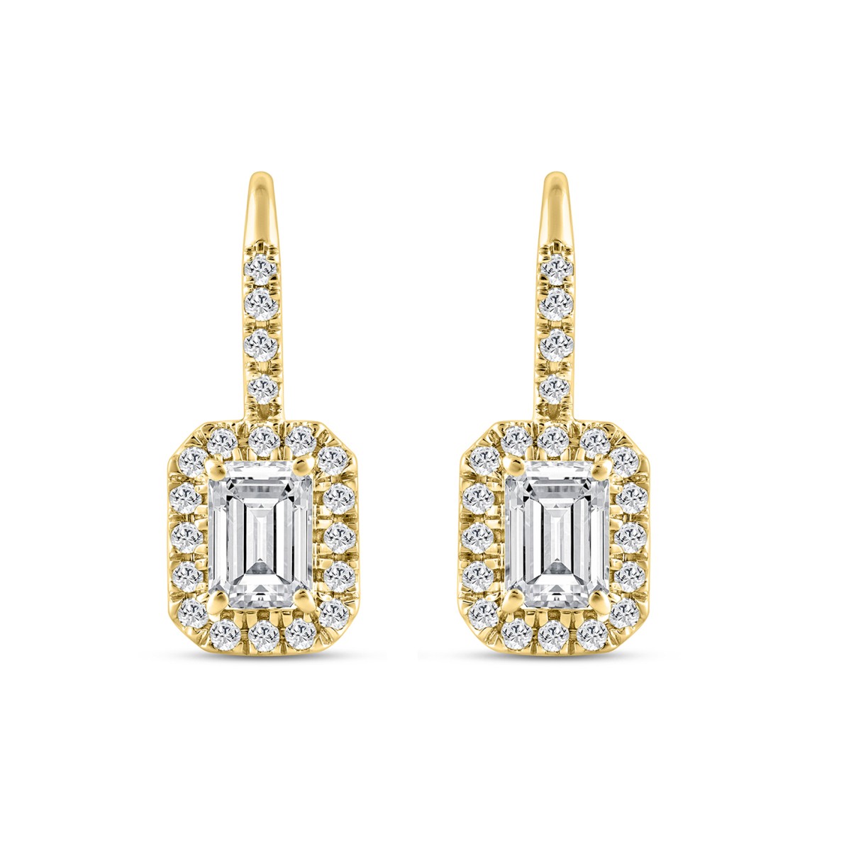 LADIES EARRINGS 1 1/4CT ROUND/EMERALD DIAMOND 14K YELLOW GOLD