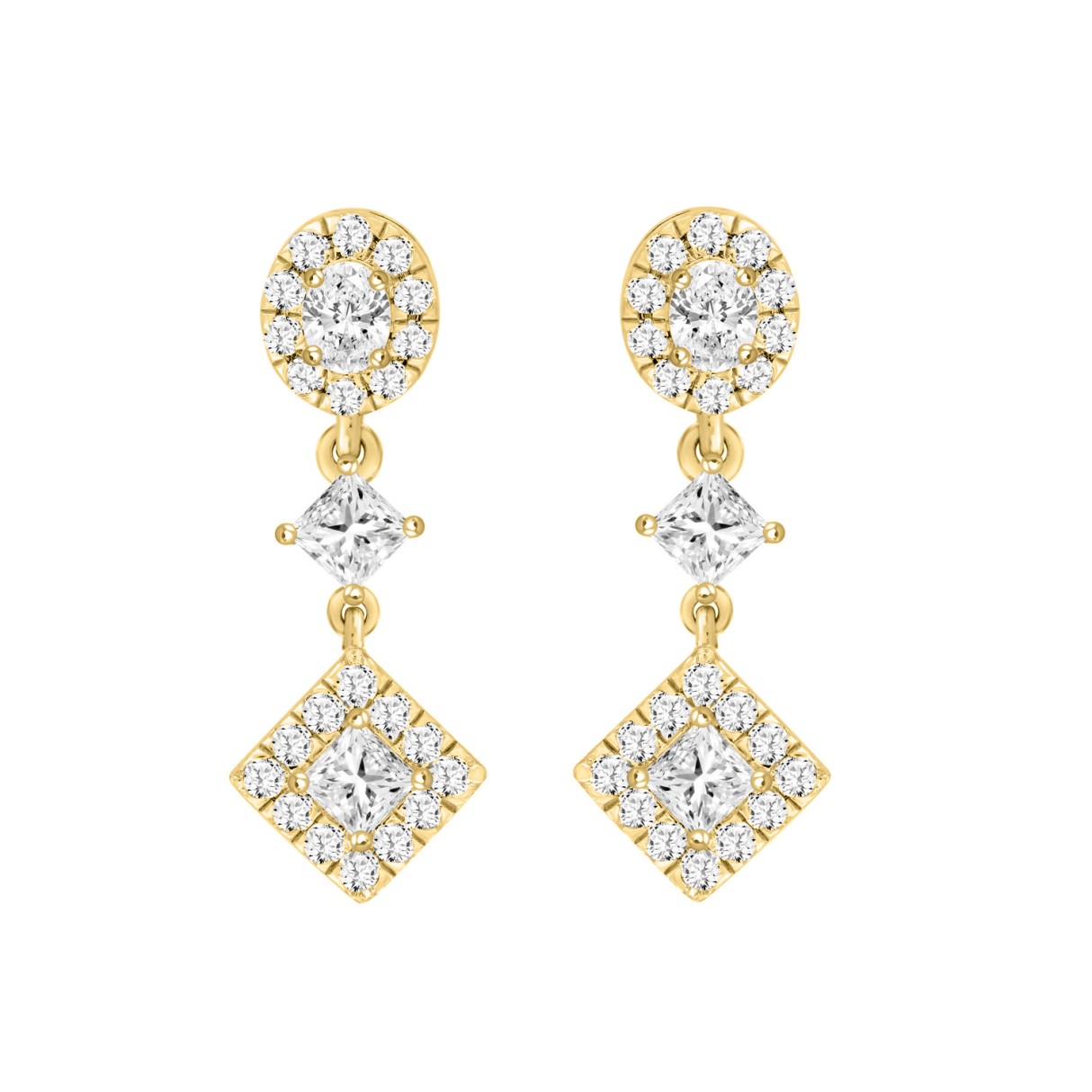 LADIES EARRINGS 1 3/4CT ROUND/OVAL/PRINCESS DIAMOND 14K YELLOW GOLD