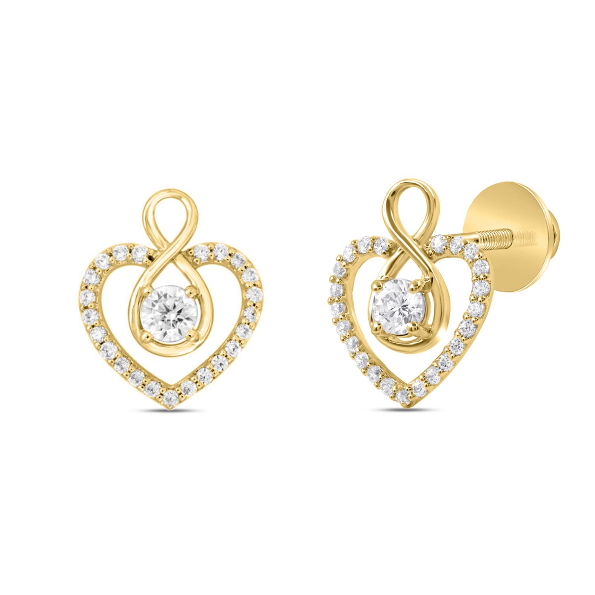 LADIES EARRINGS 1CT ROUND DIAMOND 14K YELLOW GOLD