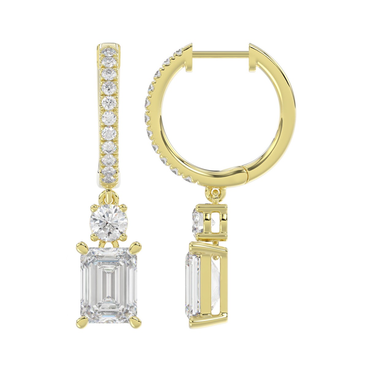 LADIES EARRINGS 2 1/2CT ROUND/EMERALD DIAMOND 14K YELLOW GOLD