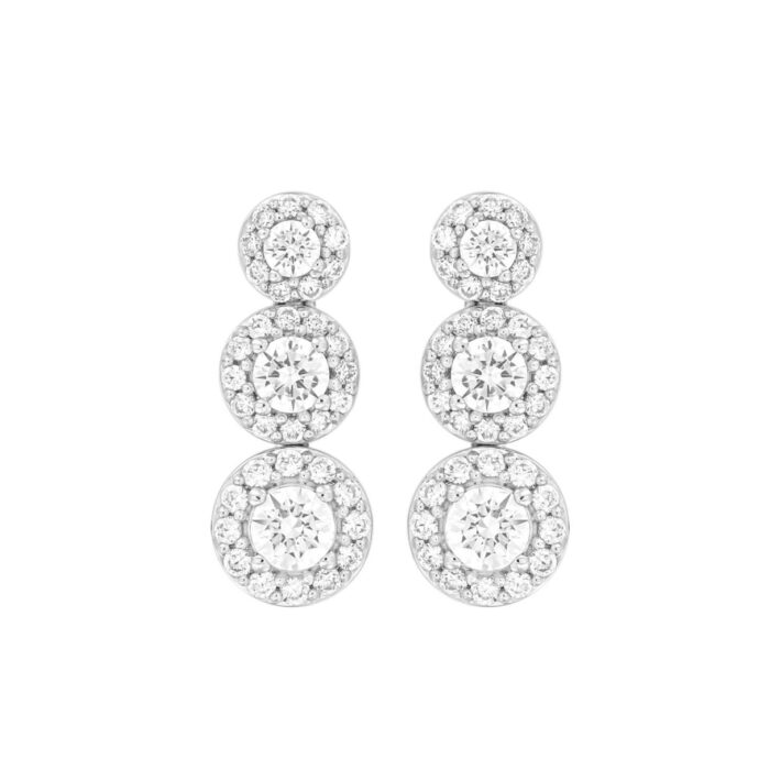 LADIES EARRINGS 3 3/4CT ROUND DIAMOND 14K WHITE GOLD (CENTER STONE ROUND DIAMOND 1 1/3C T )