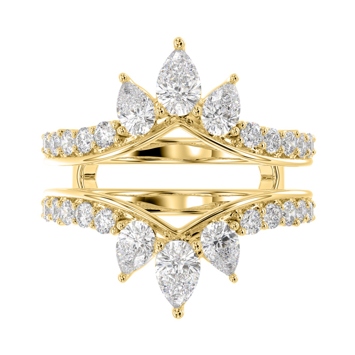 LADIES ENHANCERS RING 1 3/4CT ROUND/PEAR/DIAMOND 14K YELLOW GOLD