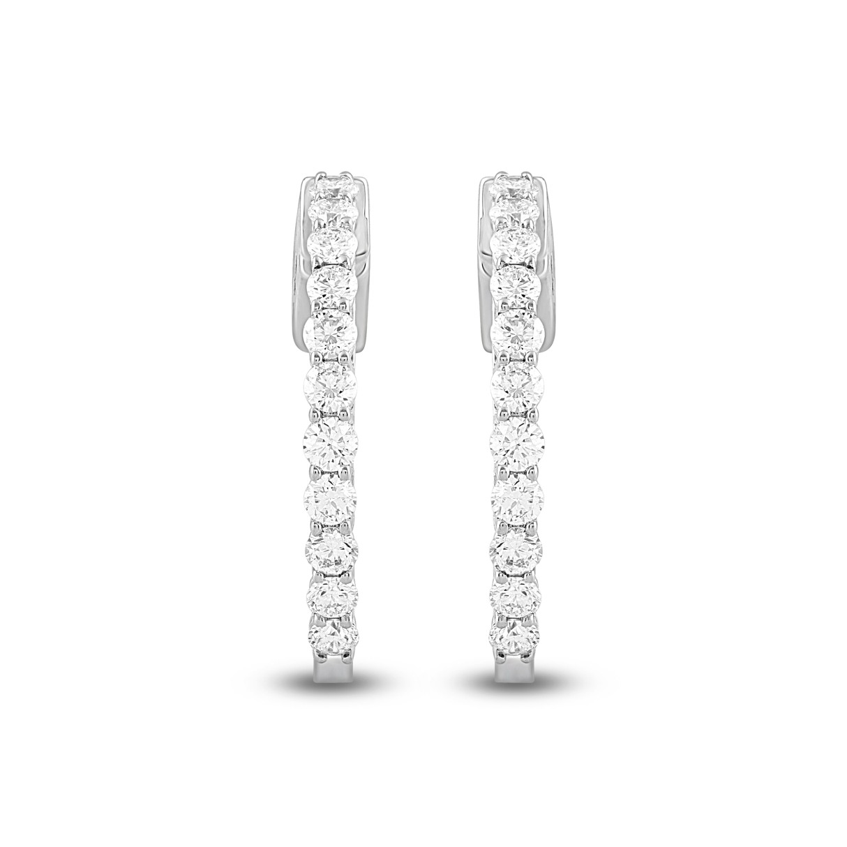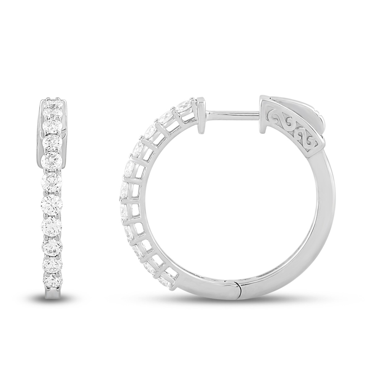LADIES HOOP EARRINGS 1CT ROUND DIAMOND 14K WHITE GOLD