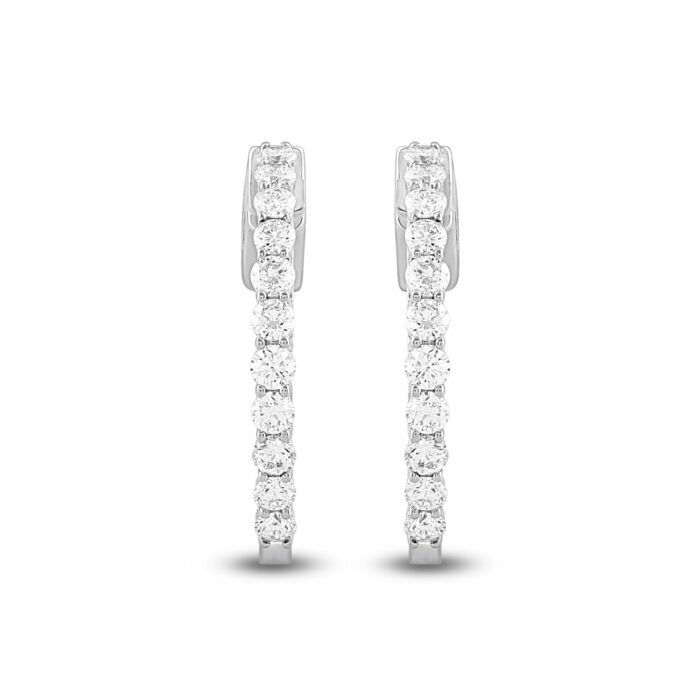LADIES HOOP EARRINGS 1CT ROUND DIAMOND 14K WHITE GOLD