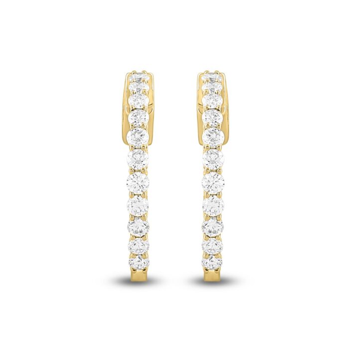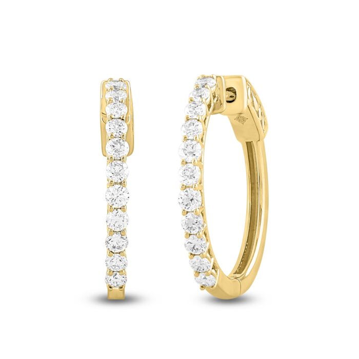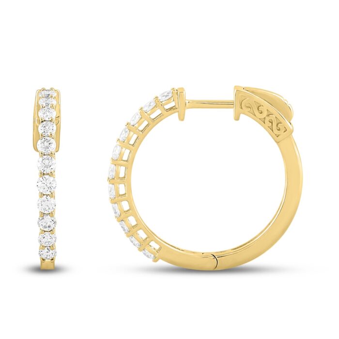 LADIES HOOP EARRINGS 1CT ROUND DIAMOND 14K YELLOW GOLD