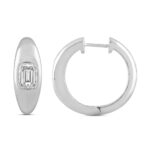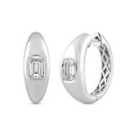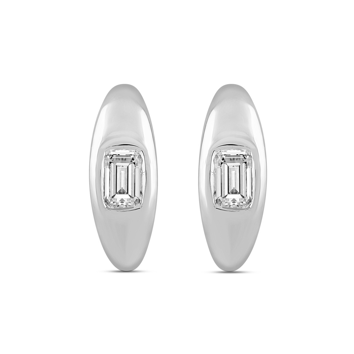 LADIES HOOP EARRINGS 2CT EMERALD DIAMOND 14K WHITE GOLD