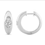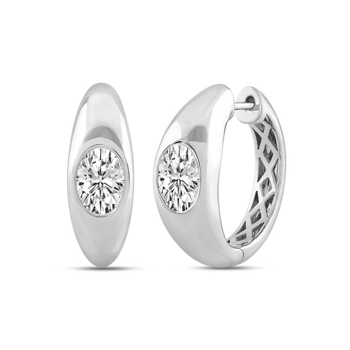 LADIES HOOP EARRINGS 2CT OVAL DIAMOND 14K WHITE GOLD