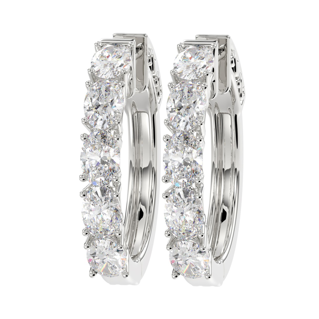 LADIES HOOP EARRINGS 2CT OVAL DIAMOND 14K WHITE GOLD