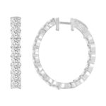 LADIES HOOP EARRINGS 9CT PRINCESS DIAMOND 14K WHITE GOLD