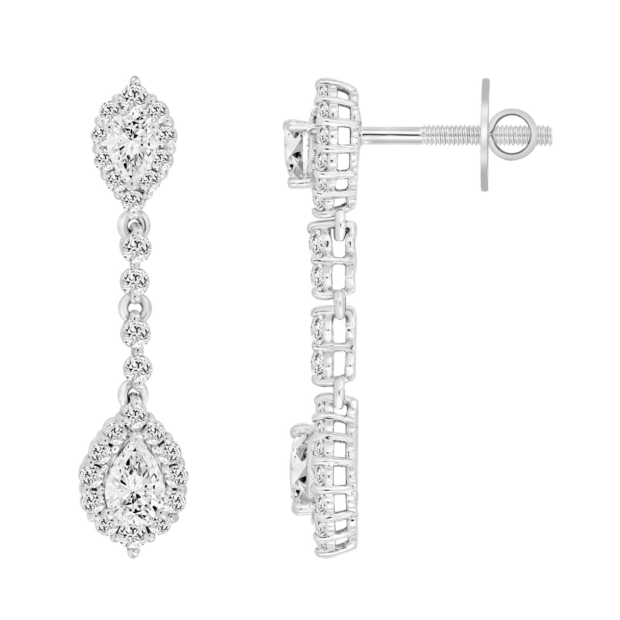 LADIES LINEAR EARRINGS 2 3/4CT PEAR/ROUND DIAMOND 14K WHITE GOLD (CENTER STONE PEAR DIAMOND 1CT )