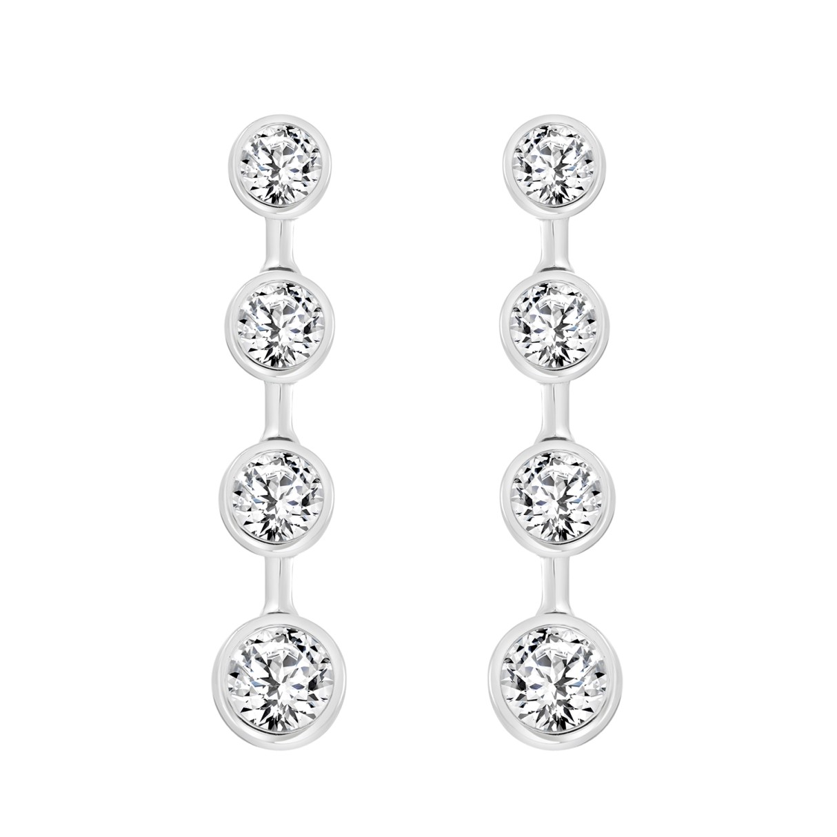 LADIES LINEAR EARRINGS 2CT ROUND DIAMOND 14K WHITE GOLD