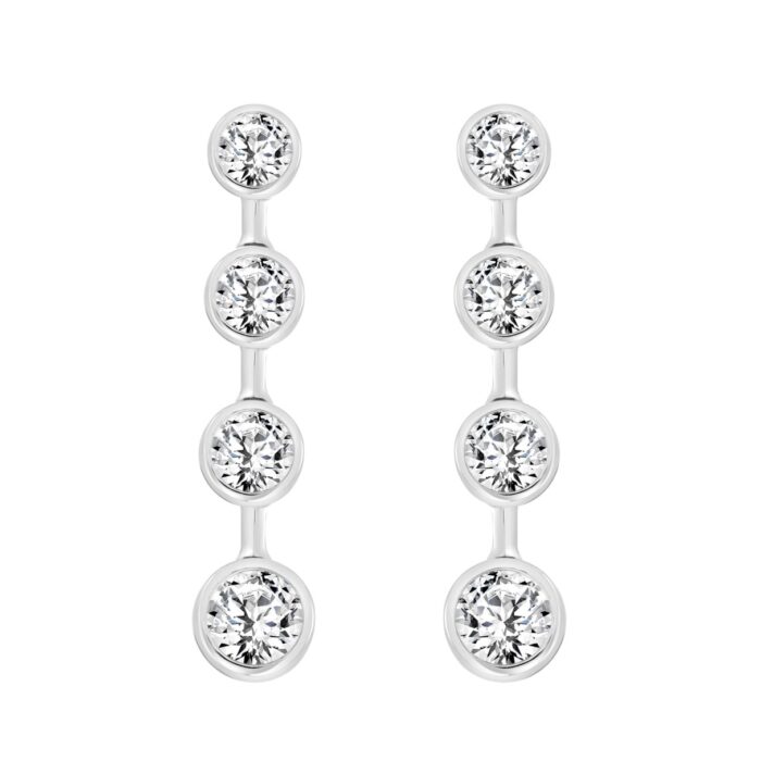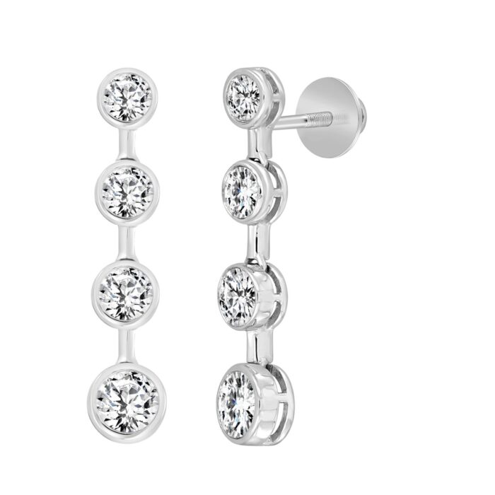 LADIES LINEAR EARRINGS 2CT ROUND DIAMOND 14K WHITE GOLD