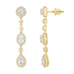 LADIES LINEAR EARRINGS 3 1/2CT OVAL/ROUND/PEAR DIAMOND 14K YELLOW GOLD