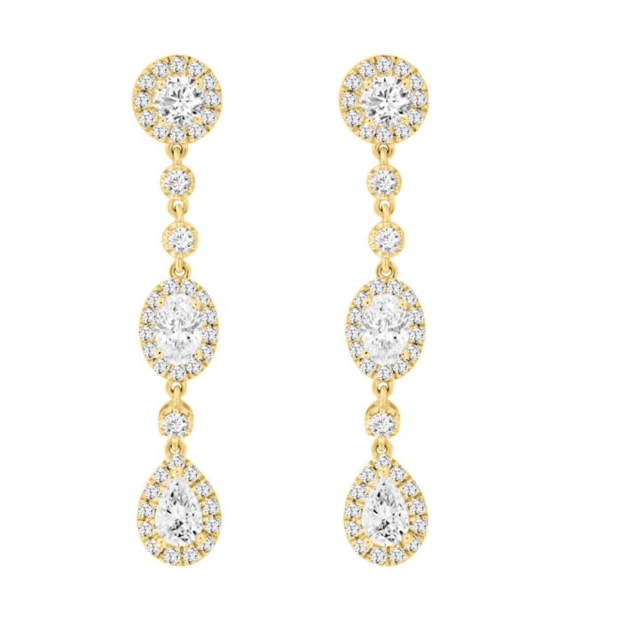 LADIES LINEAR EARRINGS 3 1/2CT OVAL/ROUND/PEAR DIAMOND 14K YELLOW GOLD