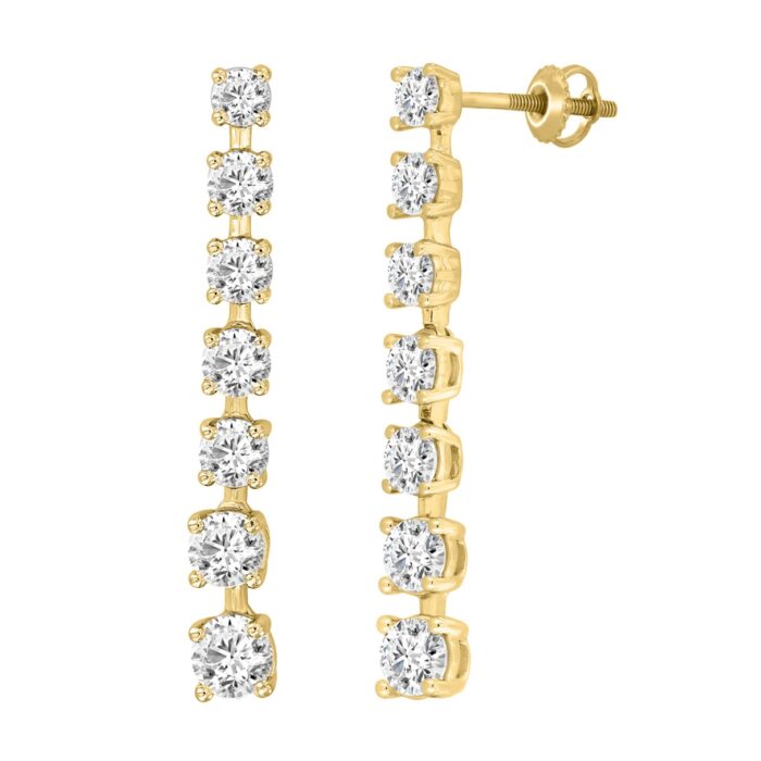 LADIES LINEAR EARRINGS 3CT ROUND DIAMOND 14K YELLOW GOLD