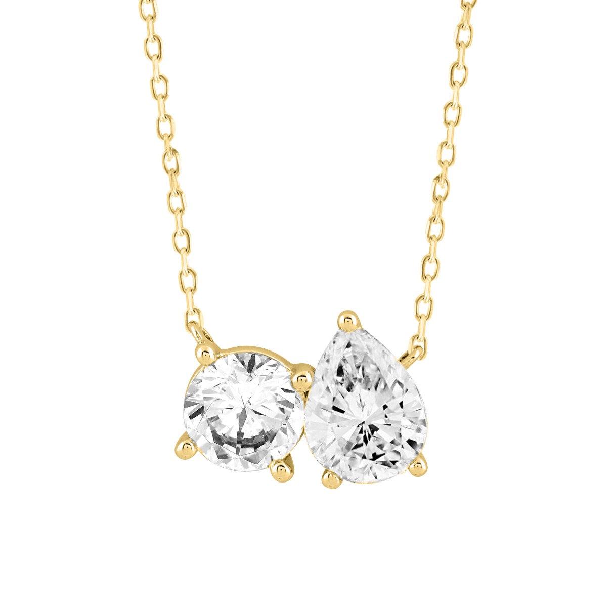 LADIES NECKLACE 1 1/2CT ROUND/PEAR DIAMOND 14K YELLOW GOLD