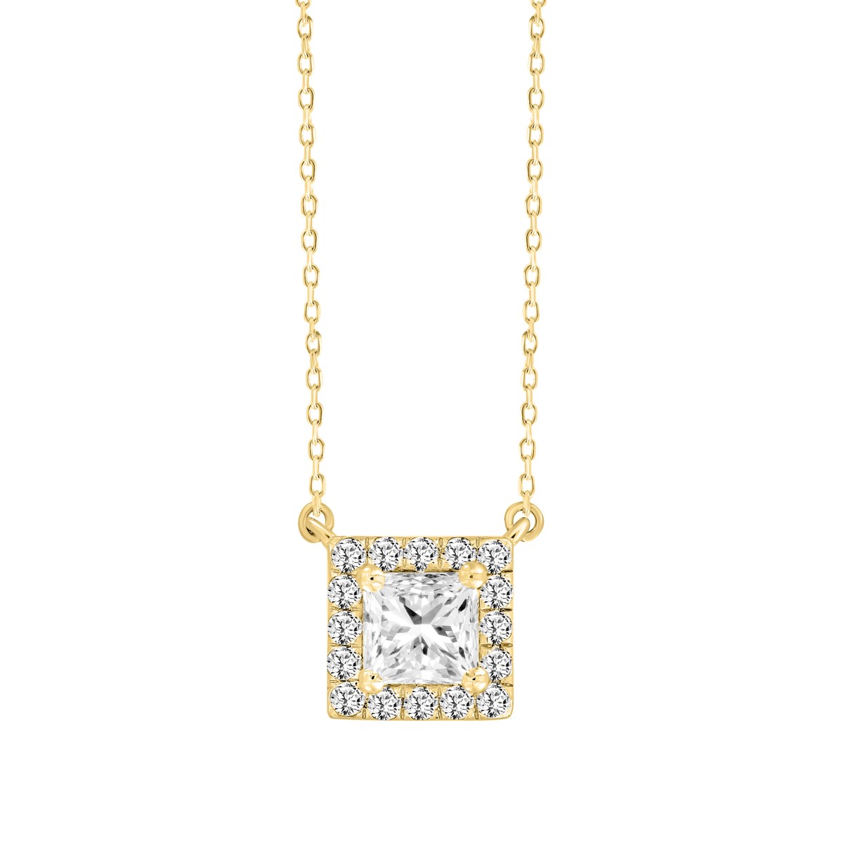 LADIES NECKLACE 1/2CT ROUND/PRINCESS DIAMOND 18K YELLOW GOLD (CENTER STONE PRINCESS DIAMOND 1/3CT)