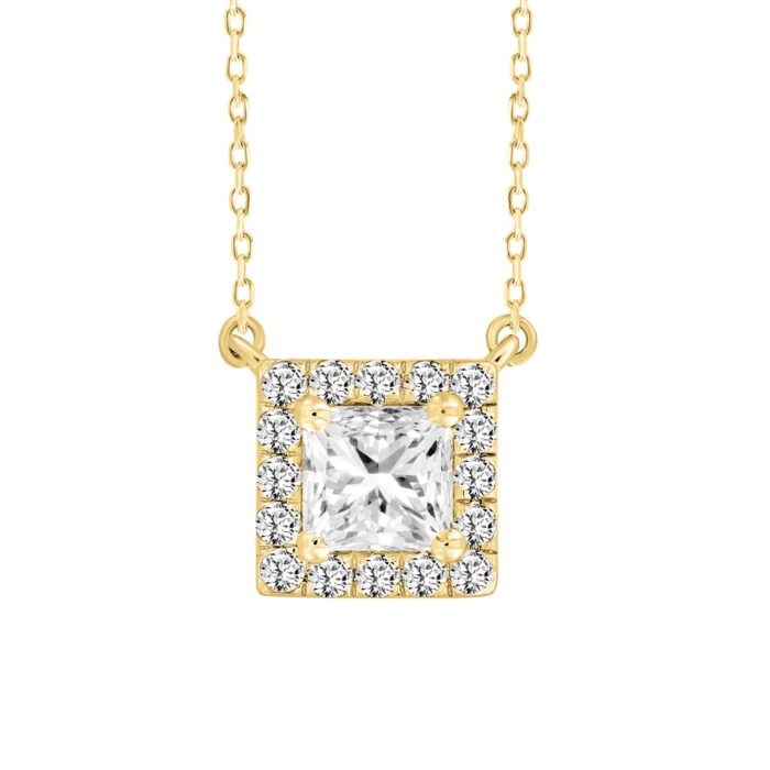 LADIES NECKLACE 1/2CT ROUND/PRINCESS DIAMOND 18K YELLOW GOLD (CENTER STONE PRINCESS DIAMOND 1/3CT)
