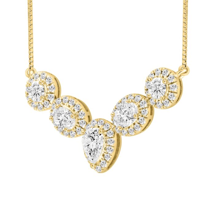 LADIES NECKLACE 2 1/2CT ROUND/PEAR/OVAL DIAMOND 14K YELLOW GOLD