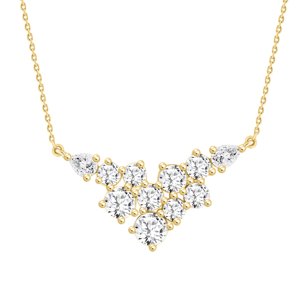 LADIES NECKLACE 2CT ROUND/PEAR DIAMOND 14K YELLOW GOLD
