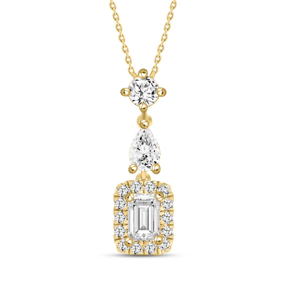 LADIES NECKLACE WITH CHAIN 1 1/2CT ROUND/PEAR/EMERALD DIAMOND 14K YELLOW GOLD