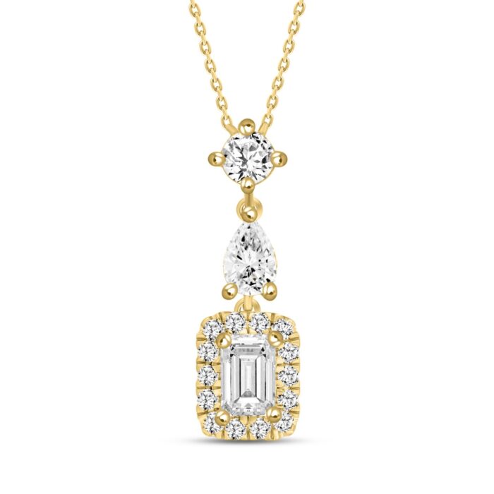 LADIES NECKLACE WITH CHAIN 1 1/2CT ROUND/PEAR/EMERALD DIAMOND 14K YELLOW GOLD