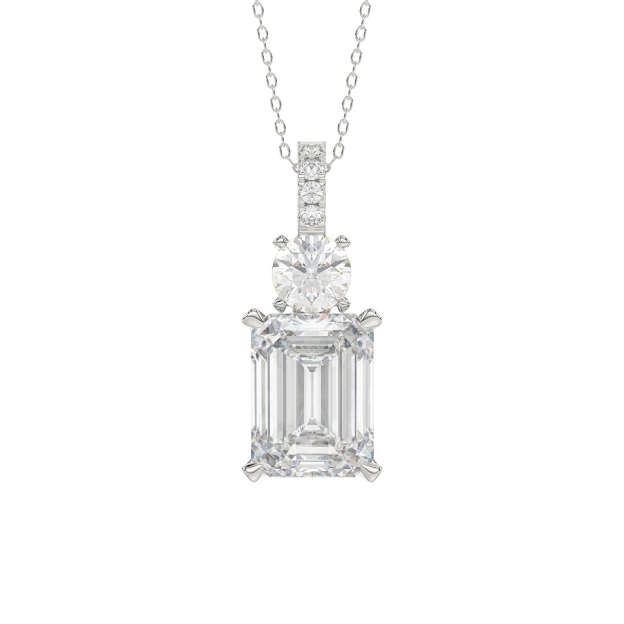 LADIES PENDANT 1 3/4CT ROUND/EMERALD DIAMOND 14K WHITE GOLD (CENTER STONE EMERALD DIAMOND 1 1/2CT)