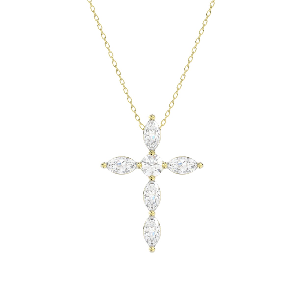 LADIES PENDANT WITH CHAIN 1 1/4CT ROUND/MARQUISE DIAMOND 14K YELLOW GOLD