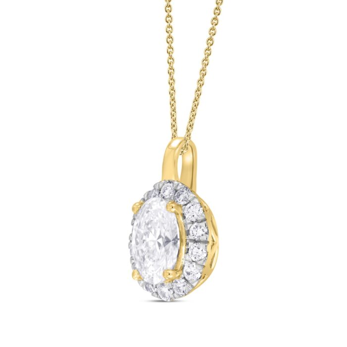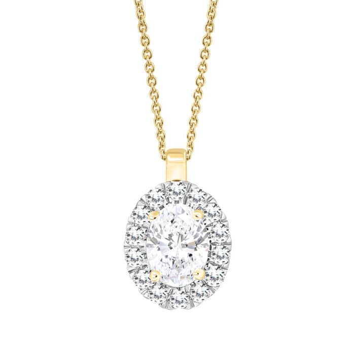 LADIES PENDANT WITH CHAIN 1/2CT ROUND/OVAL DIAMOND 18K YELLOW GOLD (CENTER STONE OVAL DIAMOND 1/3CT)