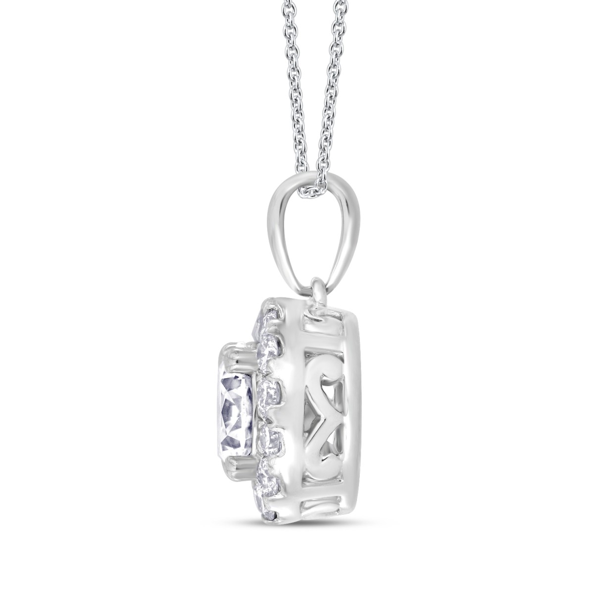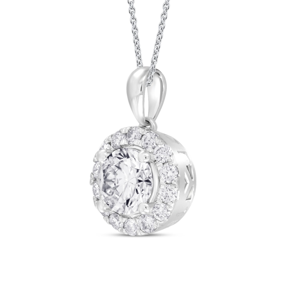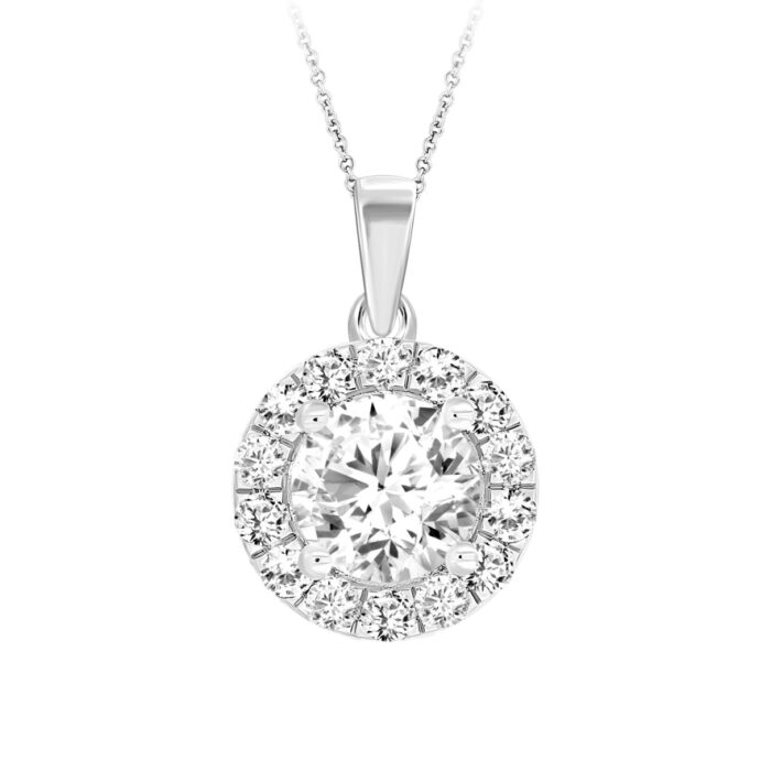 LADIES PENDANT WITH CHAIN 1CT ROUND DIAMOND 14K WHITE GOLD (CENTER STONE ROUND DIAMOND 3/4CT )
