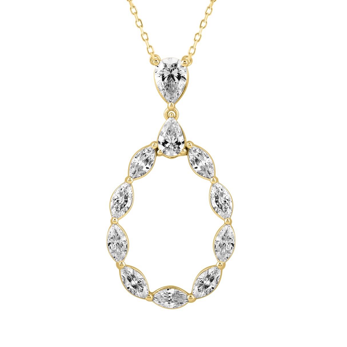 LADIES PENDANT WITH CHAIN 2 1/2CT MARQUISE/PEAR DIAMOND 14K YELLOW GOLD