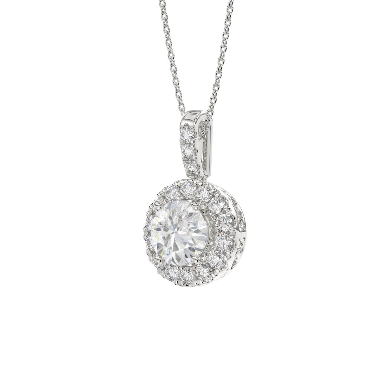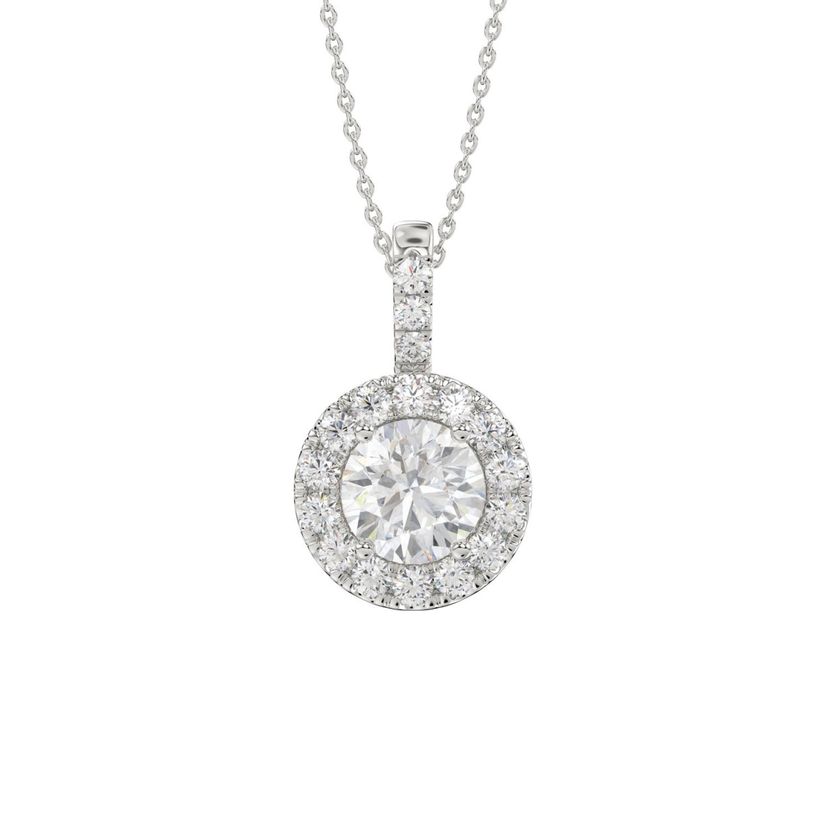 LADIES PENDANT WITH CHAIN 2 3/4CT ROUND DIAMOND 14K WHITE GOLD (CENTER STONE ROUND DIAMOND 2CT )